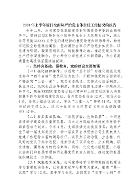 2024年上半年履行全面从严治党主体责任工作情况的报告.docx