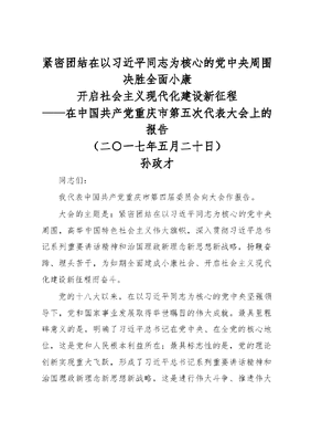 紧密团结在以习近平同志为核心的党中央周围 决胜全面小康-----重庆市党代会报告.doc