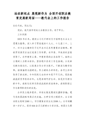 站在新起点展现新作为全面开创职业教育发展新局面——教代会上的工作报告.docx