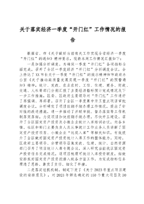 关于落实经济一季度“开门红”工作情况的报告.docx
