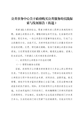 公共事务中心关于政府购买公共服务的实践探索与发展报告(街道).docx