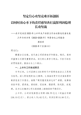 20230728-总经理在公司2023年上半年生产经营会议暨高质量发展三年行动方案(2023-2025)部署会议上的报告(无数据稿).doc