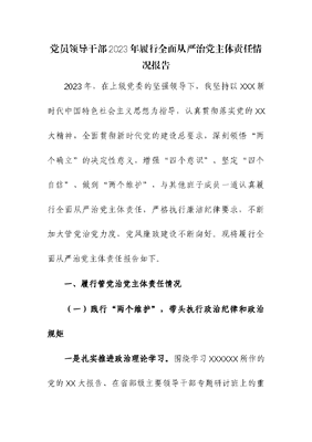 (2篇)2023年落实全面从严治党主体责任工作报告.docx