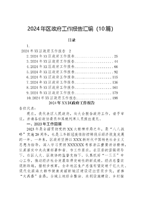 (10篇)2024年区政府工作报告汇编.docx