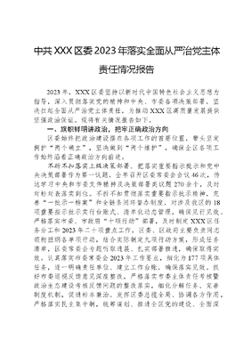 中共XXX区委2023年落实全面从严治党主体责任情况报告.docx