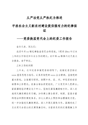 从严治党从严执纪为推进平浪社会主义新农村建设提供强有力的纪律保证——党委换届党代会上的纪委工作报告.doc