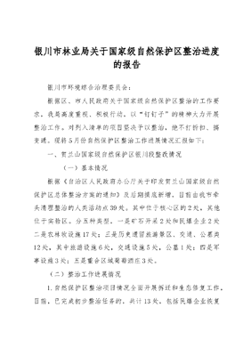 银川市林业局关于国家级自然保护区整治进度的报告.docx