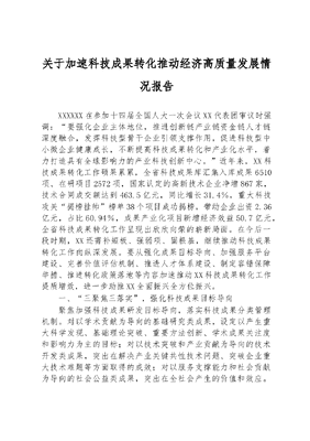 关于加速科技成果转化推动经济高质量发展情况报告.docx