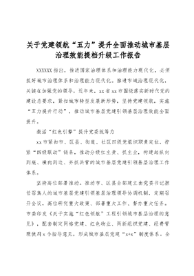 关于党建领航“五力”提升全面推动城市基层治理效能提档升级工作报告.docx