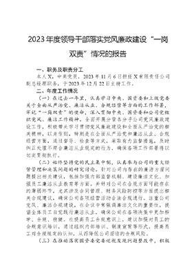 2023年度领导干部落实党风廉政建设“一岗双责”情况的报告.docx