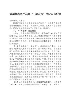 落实全面从严治党“一岗双责”情况自查报告.docx