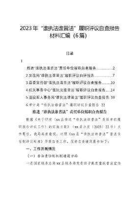 (6篇)2023年“谁执法谁普法”履职评议自查报告材料汇编.docx