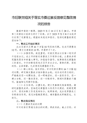 市妇联党组关于落实市委巡察反馈意见整改情况的报告.docx