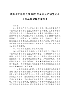 税务局纪检组长在2023年全面从严治党大会上的纪检监察工作报告.docx