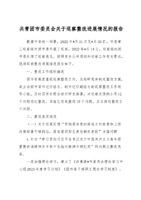 共青团市委员会关于巡察整改进展情况的报告.docx