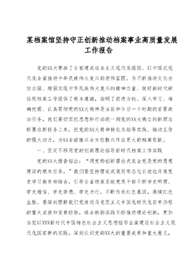 某档案馆坚持守正创新推动档案事业高质量发展工作报告.docx