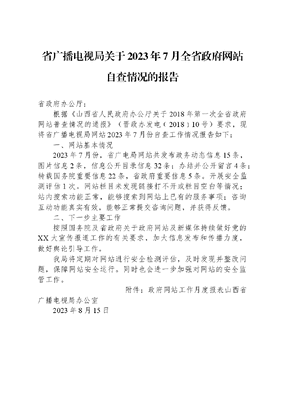 省广播电视局关于2023年7月全省政府网站自查情况的报告.docx