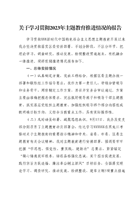 关于学习贯彻2023年主题教育推进情况的报告.docx