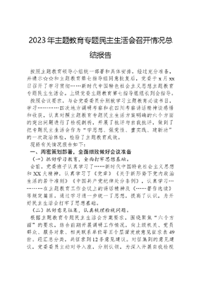 2023年主题教育专题民主生活会召开情况总结报告.docx