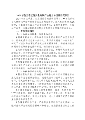 XX单位2024年前三季度落实全面从严治党主体责任情况报告.docx