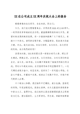 XX在公司成立XX周年庆祝大会上的报告.docx