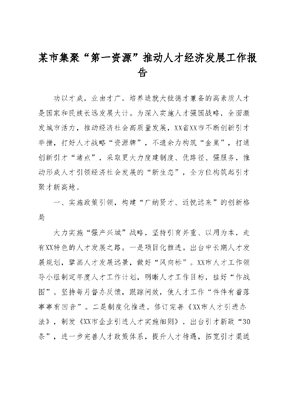 某市集聚“第一资源”推动人才经济发展工作报告.docx