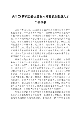 关于XX高校坚持立德树人培育农业新型人才工作报告.docx