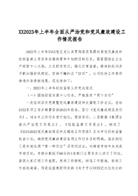 XX2023年上半年全面从严治党和党风廉政建设工作情况报告.docx