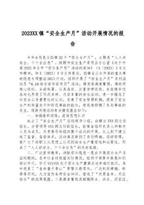 2023XX镇“安全生产月”活动开展情况的报告.docx