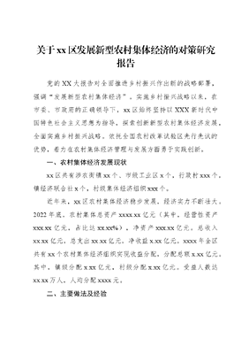 关于xx区发展新型农村集体经济的对策研究报告.docx