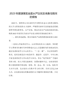 2023年度镇落实全面从严治党主体责任情况的报告.docx