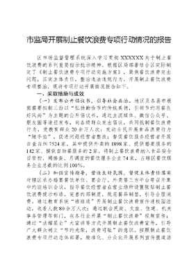 市监局开展制止餐饮浪费专项行动情况的报告.docx