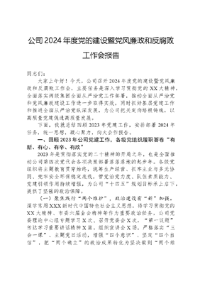 公司2024年度党的建设暨党风廉政和反腐败工作会报告.docx