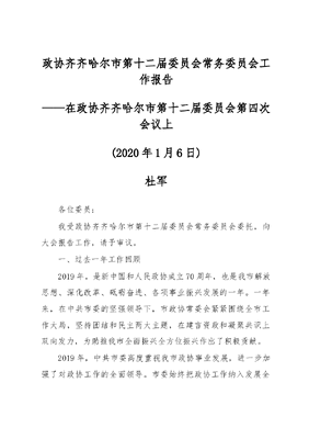 政协齐齐哈尔市第十二届委员会常务委员会工作报告.docx