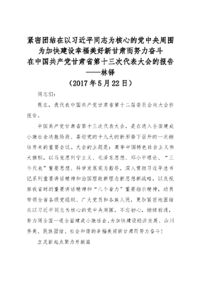 紧密团结在以习近平同志为核心的党中央周围为加快建设幸福美好新甘肃而努力奋斗----在中国共产党甘肃省第十三次代表大会的报告(20170522).doc