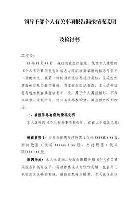 领导干部个人有关事项报告漏报情况说明及检讨书.docx