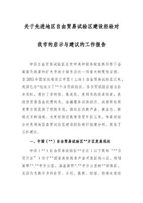 关于先进地区自由贸易试验区建设经验对我市的启示与建议的工作报告.docx
