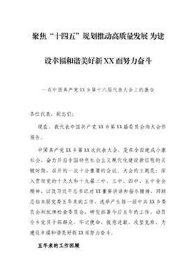 聚焦“十四五”规划推动高质量发展 为建设幸福和谐美好新XX而努力奋斗—在中国共产党XX乡第十六届代表大会上的报告.docx