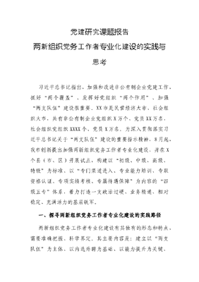 党建研究课题报告_两新组织党务工作者专业化建设的实践与思考.docx