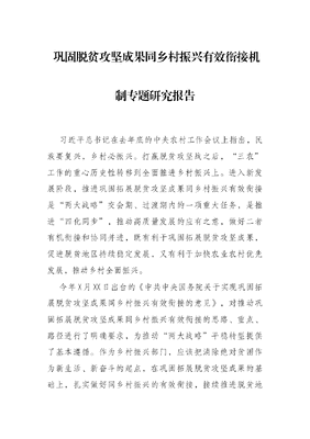 巩固脱贫攻坚成果同乡村振兴有效衔接机制专题研究报告.docx
