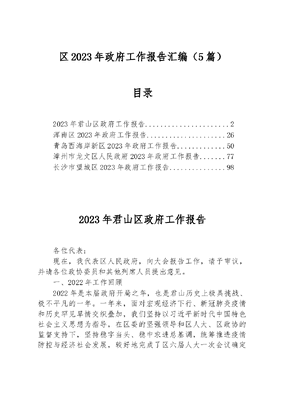 (5篇)区2023年政府工作报告汇编.docx