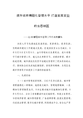 赴XX学习城市管理工作的考察报告:提升城市精细化管理水平 打造宜居宜业的生态城区.doc