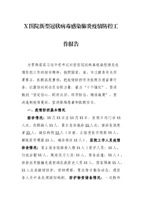 X医院新型冠状病毒感染肺炎疫情防控工作报告.docx