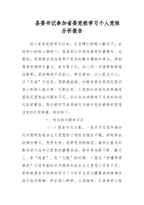 县委书记参加省委党校学习个人党性分析报告.docx