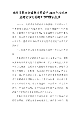 龙里县综合行政执法局关于2022年法治政府建设示范创建工作的情况报告.docx