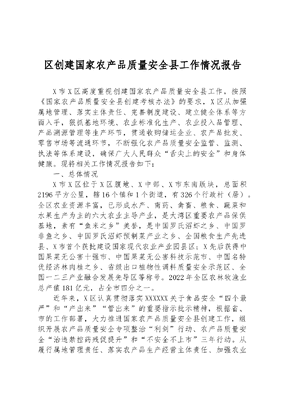区创建国家农产品质量安全县工作情况报告.docx