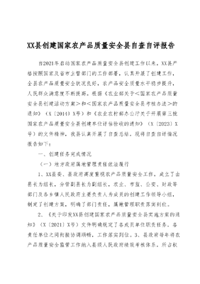 XX县创建国家农产品质量安全县自查自评报告.docx