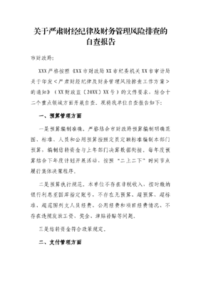 关于严肃财经纪律及财务管理风险排查的自查报告.docx