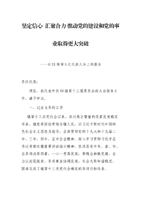 坚定信心 汇聚合力 推动党的建设和党的事业取得更大突破——在XX镇第X次代表大会上的报告.docx