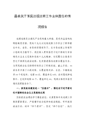 县委关于落实巡视巡察工作主体责任的情况报告.docx